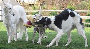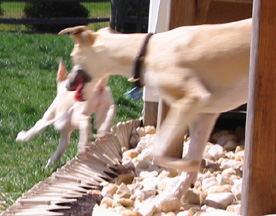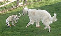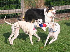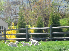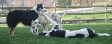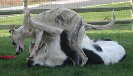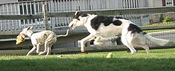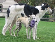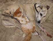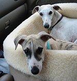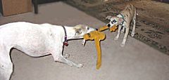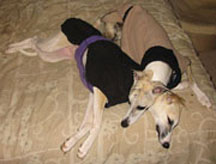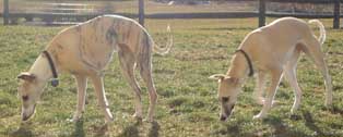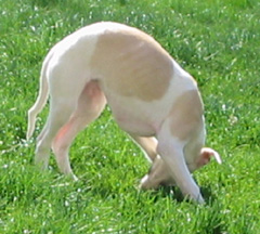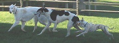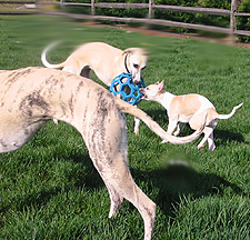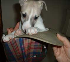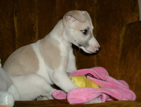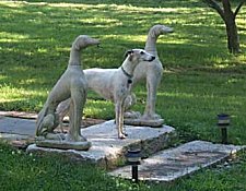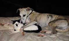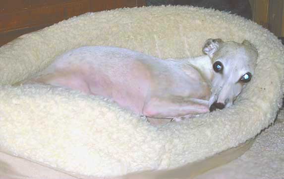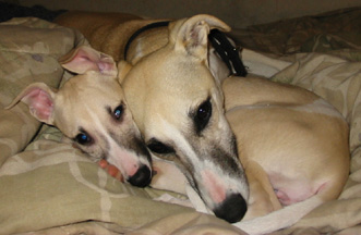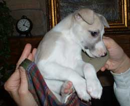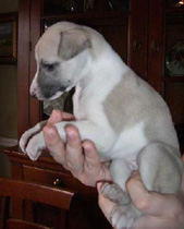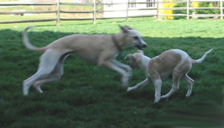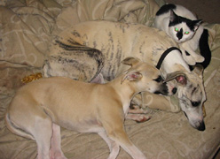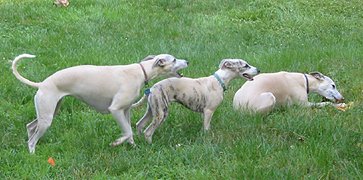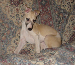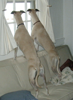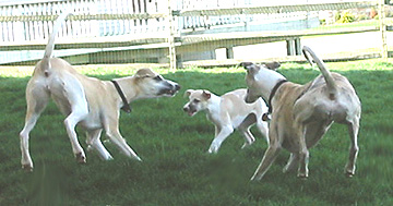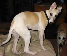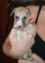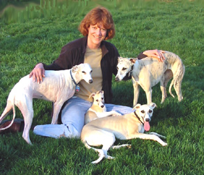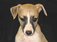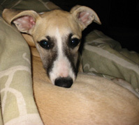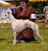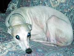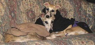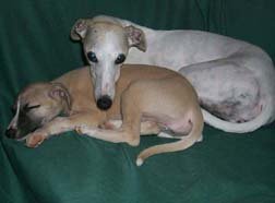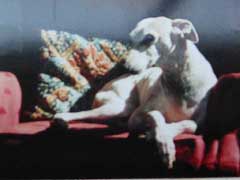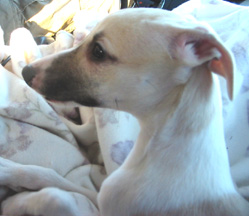 Lacy's last day Lacy has lived her name, delicate as lace, beautiful and timeless. Her beginnings were rough, only evidenced by her behavior after she came to me at age 3. Peter (my x boyfriend now), barked at Lacy the first time they met. Lacy ran away scared. I learned quickly she was afraid of men. And she wasn't house trained! The first couple of days she did her business in the house. At that time in my life, I was recouping from a stroke. I still walked rather slow and with a significant limp. And at that time a breeder friend had a litter of 11 puppies! At their tender age of 5 weeks I had two of the smallest pups stay with me short term, in order to help them grow better. Because of her problems, and all that I had going on then, I almost sent her back after the first day because she seemed too much for me to cope with while doing the work of coming back from stroke. It was my Mom that knew and made me keep her around long enough for me to see Lacy's most wonderful nature, and so much like my Gwen was too. Gwen was my first Whippet, with me for 17 years, who had left me just a couple months before Lacy came. Lacy settled in and she learned to use the dog door and stopped doing her business in the house. Lacy can go anywhere with me off lead, through a crowd or in down town Philadelphia. Like Gwen, Lacy listens to me absolutely, even so far as to stop the chase of a squirrel if I call. Lacy had gone to her first home as a baby, and was returned to her breeder when that couple divorced. She was not doing well with kennel life. Because of her mild separation anxiety, She goes almost everywhere with me - even now as I write this during her last days, she is with me at my job. I'm a Visiting Angel (senior health care assistant). My client Charlotte is not much of a dog person, obsessively clean being a big and important part of her life. But even now, barely functioning, Lacy has won another heart. Charlotte has mid stage Alzheimer's, yet she remembers Lacy from day to day. She pats her and smiles and even giggles like a child. To remember Lacy’s name when she doesn’t even remember her son’s name tells it all. Lacy is not just great with people, she is great with other dogs too, especially puppies. The first puppy Lacy raised was Lea. Lacy was eight when Lea came to live with my x Peter and I and Lacy. Lea was the first Piper Whippet (Anne Stark in Cincinnati - www.piperspuppies4u). When Lea was a year old Peter and I split up. Lea went with me. To his surprise (because he wasn’t a dog person), Peter missed her terribly. So the second Piper Whippet came to PA. Peter's Willow is a carbon copy of Lea even though they have different parents and only their grandmother in common genetically. Peter would bring Willow over to my house when he went to work (I worked at home then). Willow and Lea bonded and Lacy raised her second puppy. When I was moving an hour's drive away, I made the difficult but right decision to give Lea to Peter and Willow. Willow had never been alone, and Lea tried to bolt out the door whenever I opened it. The couple times she did manage to escape, she would run far and get lost, and only the kindness of a stranger who called my phone number gotten from her tag, got her back to me. I was in worried panic every she was gone. Peter has an eight foot fence and a double door system, so I knew giving Lea to Willow and Peter was best for all. So Lacy and I were alone again. For the third year in a row, we drove to Cincinnati from near Philadelphia, and brought home Fauna to join us, and Lacy raised her third puppy. At six months old to the day, the day before my birthday, (a too athletic for her own good) Fauna jumped a six foot fence, amazingly followed by Lacy who had never jumped out of any fence. Fauna ran about half a mile the only wrong direction, right in front of a car. Unfortunately, Lacy saw this. The person who stopped and tried to catch her said she ran the opposite direction (back home) howling. That is probably the only time in her life that Lacy howled. She was very depressed for several days. About a year later, I still wanted a solid fawn bitch (Lea, Willow and Fauna are all solid fawn with a smidge of white). I had wanted this since I saw the first one 25 years prior. Anne’s Lucy and Lilly were having their last litters. Each had always thrown solid fawn girls in every litter they ever had. But as luck would have it, neither had one this time. Fortunately, just next door to my Mom, Polly Clement (co-owned with Karen Robertson) had bred her Marnie Ch. Seaspell’s Point Cabria). I adored the smallest puppy, one of two solid fawn puppies in that litter, from day one! Cabria’s Secret of the Sea her AKC name, Elafi (means fawn and faun in Greek), is the fifth puppy Lacy raised. A perfect Mommy/sister, Lacy never hurt any puppy (or any other creature), yet still taught each one to give her space and respect. Every once in awhile she would even play with them. Lacy has always traveled with me in the back seat of my car which has four inches of foam covered by fur. Lacy has taught all the other puppies to ride well in the car too. She lets her sisters get attention while quietly waiting to get hers. Her non-pushy gentle loving nature won over many hearts in her lifetime, especially mine. I suspect even in these last days, she's holding on just for me. Her tired body has lost all the extra weight she had from eating whatever edible she found whenever or wherever she could. I pray this most wonderful soul has a peaceful passing, she has lived her life with amazing dignity. I will miss her muchly. Update: Lacy died very quickly and peacefully on July 17, 2006, the above written just a few days before she passed. My x boyfriend wrote two letters to me for Lacy, the first when she started to decline, the second after she passed: Letter 1 Letter 2 Sorrowful greetings Sharon, I'm so sorry for your loss. The Story of "The Golden Girls" As mentioned above, I g