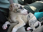"Tru-Be" meeting my new Mom and riding in the car with my new friend Lacy to my first home. |
