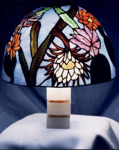 "Cactus Lamp" This lamp is constructed by the tiffany method. The large pieces of this lamp are individually kiln formed.