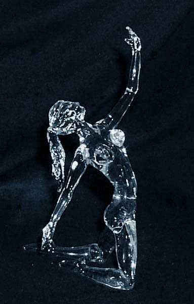 About this sculpture: This pyrex figure is 7" tall, 5" wide and 3" deep. It is a one of a kind and was created with a live model.