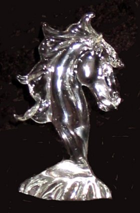 About this sculpture: This pyrex horsehead is 3" tall, 3" diameter. A similar one can be purchased for $55.
