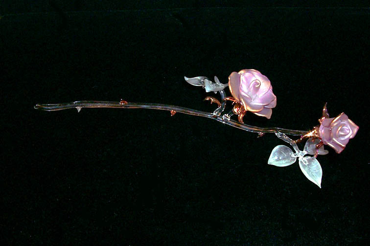 About this sculpture: This pyrex rose is life sized (12" long 4: wide and 3" tall).